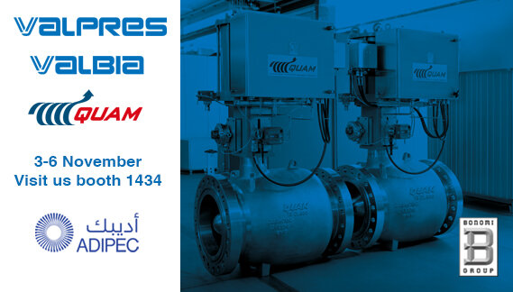 ADIPEC 2025 | Join us from November 3 to 6 at stand 1434, where we will showcase the integrated technological solutions of Quam, Valpres, and Valbia — companies specialized in the industrial and Oil & Gas sectors: ball valves, gate valves, choke control valves, axial flow valves, and actuators to deliver fully integrated solutions — including HIPPS, SSV, WHCP, anti-surge valves, and slam-shut valves among the products we will present.